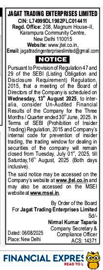 Board Meeting Scheduled for August 14, 2017 at 1100 Hrs. | |